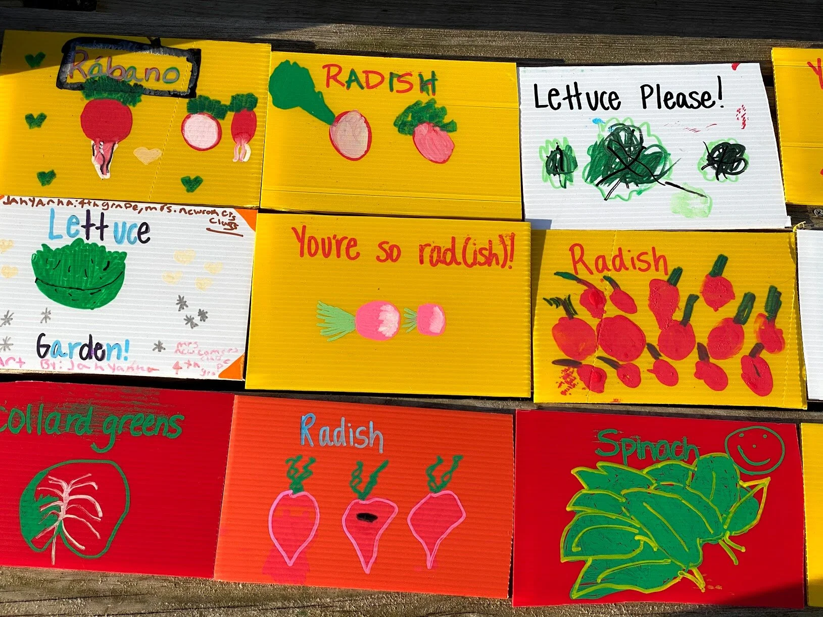 Though we didn’t know at the time it would be our last Garden Club of the year, students had a blast gardening in the sunshine: We worked together to pull old cabbage plants that they harvested from so many times in the high tunnel and laid fresh compost (and maybe hauled a friend or two in a wheelbarrow) in it’s place. We also celebrated spring by making fresh produce signs for the garden and harvesting a ton of lettuce to take home. By the end of the club, everyone was able to explain the steps needed to prepare a garden bed for spring planting.